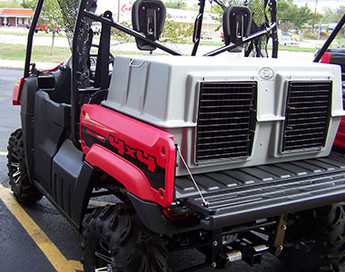 At Custom Molding Services, we also manufacture several of our own products and market them. One of those products is the Easy Loader line of dog kennels and accessories. We currently make two sizes of kennels with others on the way. The first is the Easy Loader, it is designed to fit between the fender wells of full size pickups and large SUV’s. The other is the Deuce and designed to fit between the fender wells of small and mid-size pickups and smaller SUV’s. Both are often used on ATV’s and UTV’s as well.